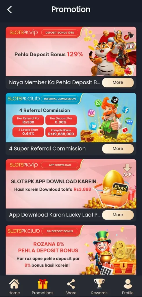 The earning app Slots PKR gaming platform has rapidly become a favorite of players due to the attractive design and interface. Most of the players are here to gain experience, and others are here for fun. But the most important thing, which everyone likes, is that it gives multiple opportunities for players to earn real money without any investment. If you want to become an expert gamer, then download this app instantly and then start your gaming today.